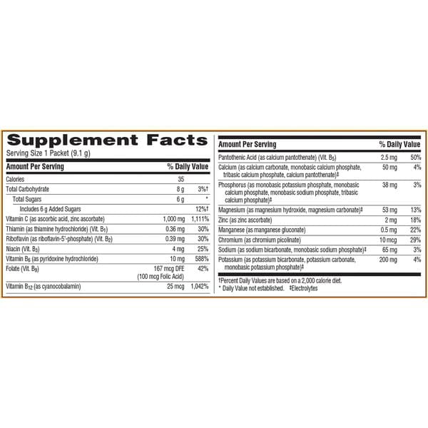 • B vitamins for energy support and electrolytes to help replace those lost through perspiration (1)