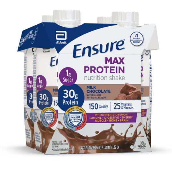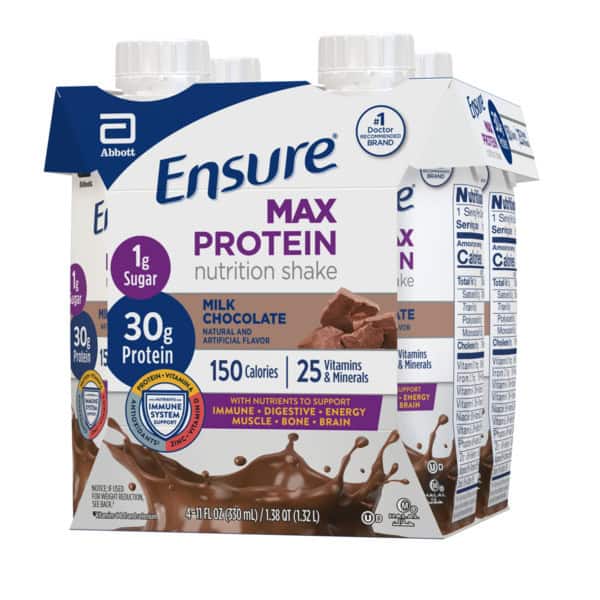 Ensure Max Protein shakes are also prepared with a 4g fiber blend with 1g of prebiotic fiber to support digestive health. Available in 7 delicious varieties, including 2 with caffeine,* you’re sure to find your favorite flavor. From Ensure, the #1 doctor-recommended brand.† This product is gluten-free and suitable for lactose intolerance.‡