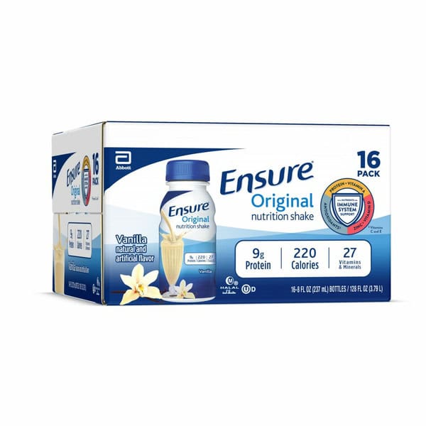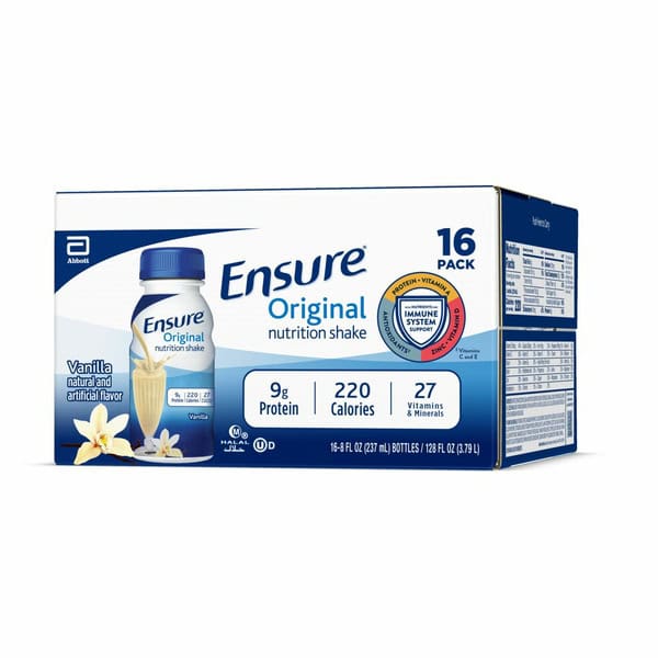 Ensure Original nutrition shakes have 9 grams of protein and 27 vitamins and minerals. Ensure nutritional shakes have protein, vitamins A and D, zinc, and vitamins C and E that support immune health. These delicious flavored shakes are ready-to-drink, kosher, halal, and suitable for lactose intolerance.* Ensure is a great choice for you and the ones you care for.