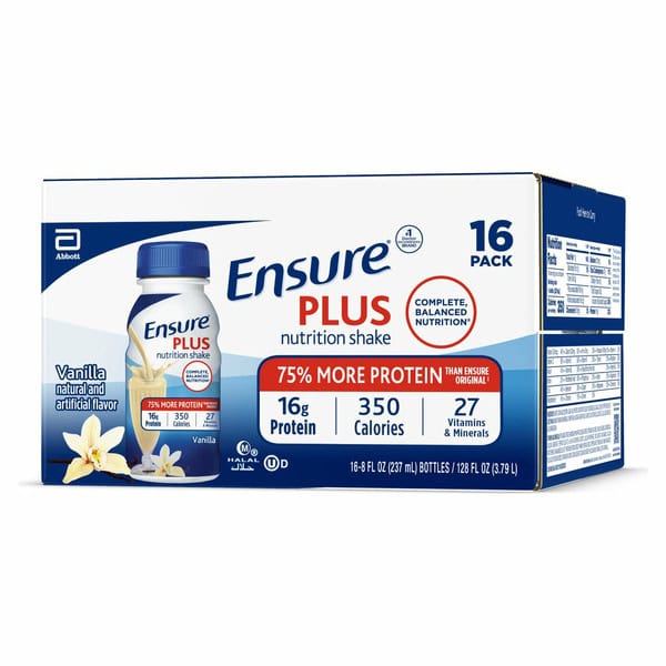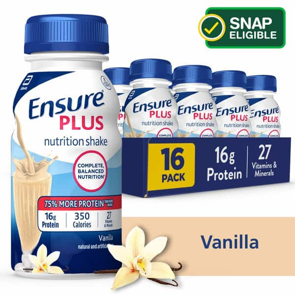 Ensure Plus nutrition shakes are clinically proven to help gain weight. Each shake contains 16 grams of high-quality protein, 350 calories, 27 vitamins and minerals, and nutrients to support immune-system health, including vitamins A and D, zinc, and antioxidants.* Ensure Plus protein shakes provide complete, balanced nutrition and are a great meal replacement option!