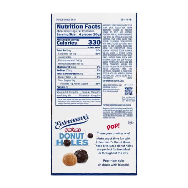 Make snack time fun-time with Entenmann’s Rich Frosted Pop’ems Donut holes! These moist, little golden cakes enrobed in rich chocolate frosting are perfect any time of day.