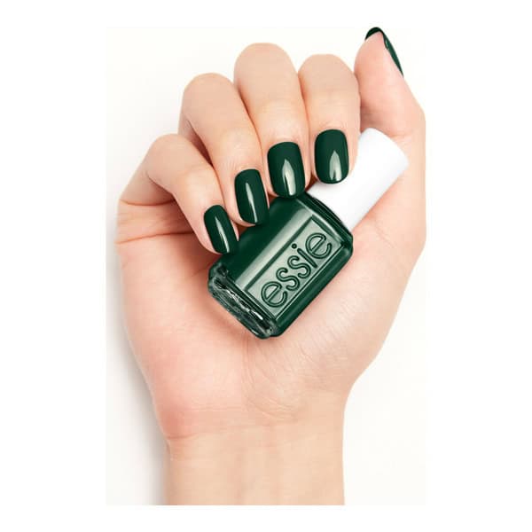 • Essie nail color Off Tropic – forest green nail polish with a cream finish.