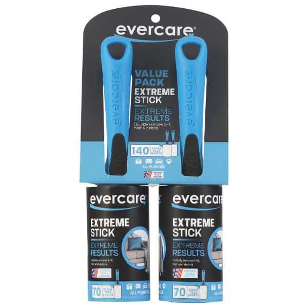 140 clean tear sheets. Total 34.4 ft x 4 in (10.4 m x 10 cm). Extreme stick. Extreme results. Quickly remove lint, hair & debris. All purpose. Assembled in USA since 1956. Made in USA with USA and imported parts.