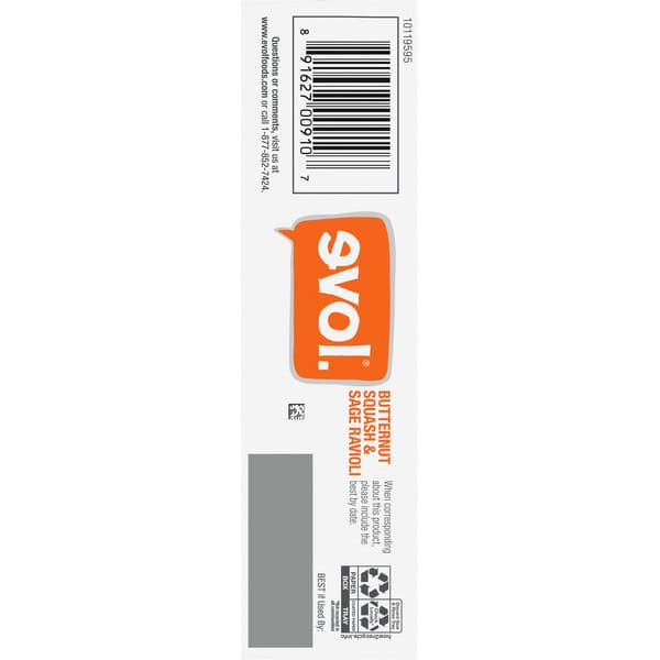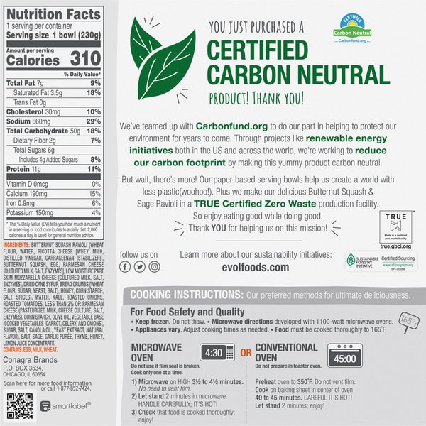 • One 8.13 oz. Evol Butternut Squash & Sage Ravioli, Vegetarian, Single Serve Frozen Meal