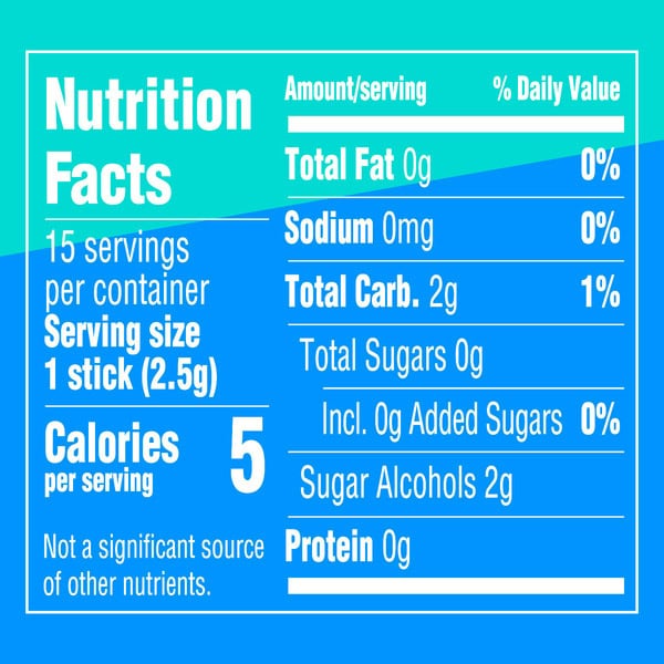 Sorbitol, Gum Base, Glycerol, Natural And Artificial Flavors, Hydrogenated Starch Hydrolysate; Less Than 2% Of: Aspartame, Mannitol, Acesulfame K, Soy Lecithin, Bht (to Maintain Freshness), Color (blue 1 Lake).