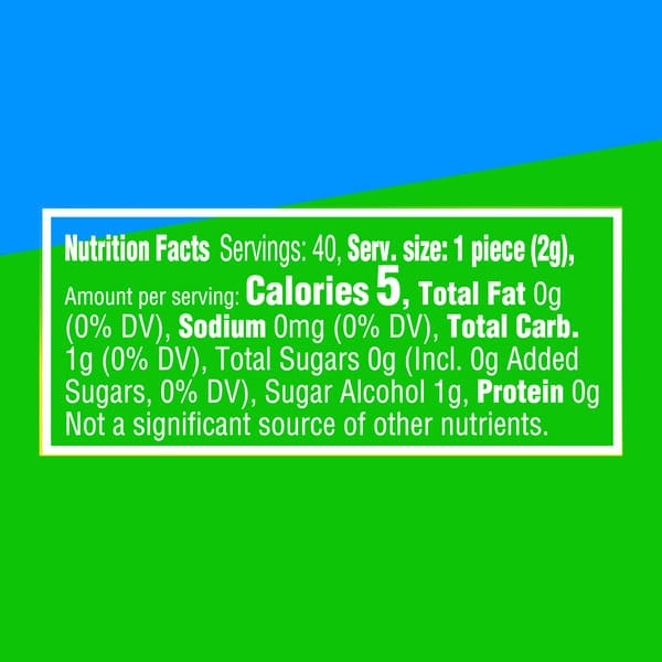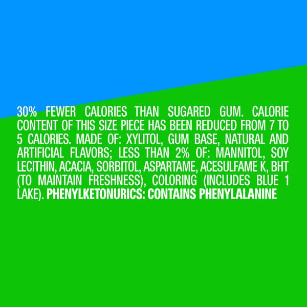 Xylitol, Gum Base, Natural And Artificial Flavors; Less Than 2% Of: Mannitol, Soy Lecithin, Acacia, Sorbitol, Aspartame, Acesulfame K, Bht (to Maintain Freshness), Coloring (includes Blue 1 Lake).