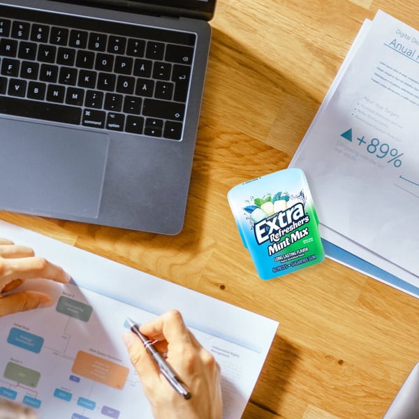 EXTRA Refreshers Mint Mix Gum gives you long lasting flavor for any occasion. Stock up on convenient bottles for the office or for when your party guests need something fresh to get the night started. From first dates to 50th anniversaries, enjoy incredibly fresh breath with this delicious mix of peppermint freeze, icy spearmint and sweet mint flavors. Chew EXTRA Refreshers Gum for a delicious way to help you stay in the EXTRA Zone for big tests, or spread the love by sharing a bottle with your study group. This bottle is easy to open and close, so you can save some minty fun for later. Find crisp, invigorating refreshment from head to toe with EXTRA Refreshers Mint Mix Gum.
