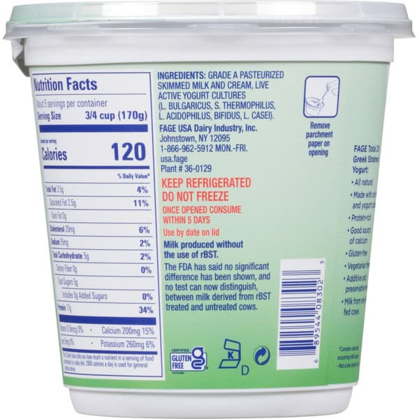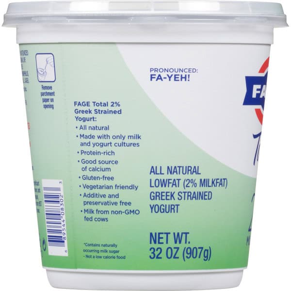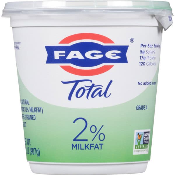 Pronounced: Fa-yeh! Milk produced without the use of rBST. The FDA has said no significant difference has been shown, and no test can now distinguish, between milk derived from rBST treated and untreated cows. Fage Total 2% Greek Strained Yogurt: All natural; Vegetarian friendly; Additive and preservative free. Milk from non-GMO fed cows.
