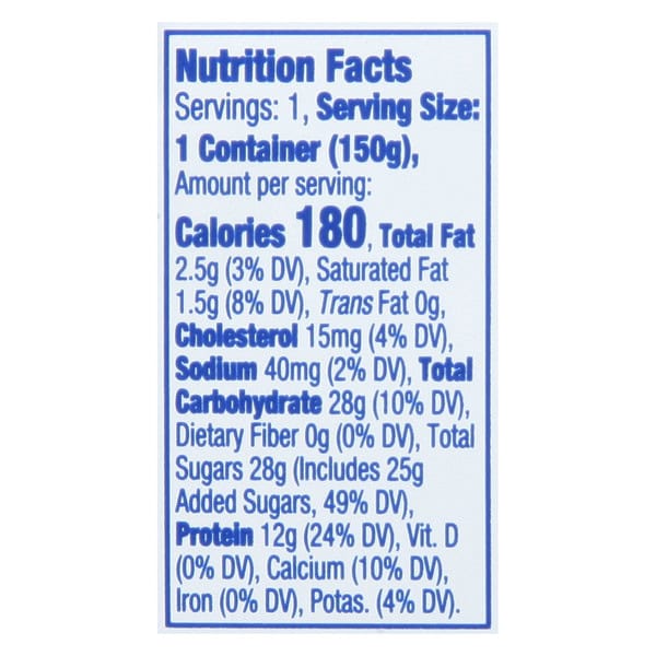 Pronounced: Fa-yeh! All natural. Milk produced without the use of rBST. The FDA has said no significant difference has been shown, and no test can now distinguish, between milk derived from rBST treated and untreated cows. Reduced fat (2% milkfat). 58% less fat than our 5% milkfat yogurt (per 150 g). Fat content reduced from 6 g to 2.5 g per 150 g.