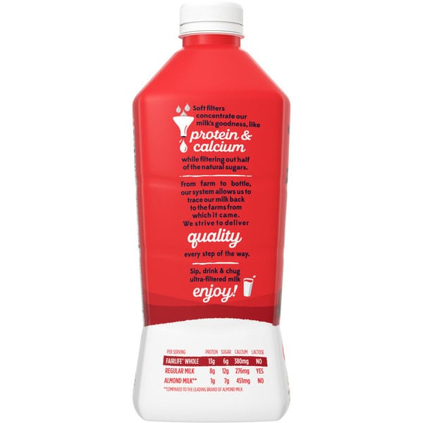 All our milk flows through soft filters to concentrate its goodness like protein and calcium while filtering out some of the natural sugars. Our deliciously creamy and full flavored fairlife Whole Ultra-Filtered Milk has 50% less sugar and 50% more protein than regular milk. Plus, there’s no artificial growth hormones used and it’s lactose free.