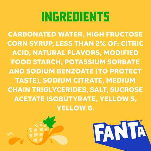 Carbonated Water, High Fructose Corn Syrup, Citric Acid, Natural Flavors, Modified Food Starch, Potassium Sorbate And Sodium Benzoate (to Protect Taste), Sodium Citrate, Medium Chain Triglycerides, Salt, Sucrose Acetate Isobutyrate, Yellow 5, Yellow 6.
