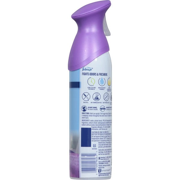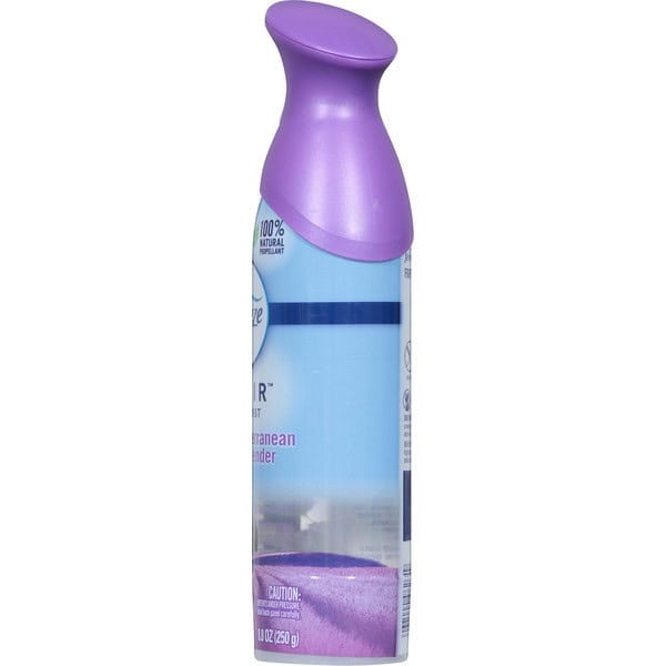 Odors. They’re everywhere… lingering in the air or arising at the most awkward times. Forget masking them with some froo-froo spray; Febreze Air Effects actually fights air odors. This can of ahhh-some straight up fights stink with a neat little molecule called cyclodextrin (Bonus: It’s naturally made from corn). It’s a handy air freshener that’s easy to use: Simply spray in a sweeping motion and fight those bad smells anywhere… the bathroom, the kitchen, that cabin you rented for the weekend, the shoe closet, your kid’s room… anytime you want an instant burst of fresh. With the calming scent of Mediterranean Lavender, you can enjoy a delightful floral breeze of freshness. And because Febreze AIR uses 100% natural propellants, you can confidently freshen your home every day. Looking for even more ways to breathe happy with Febreze? Take the freshness on the road with CAR Vent Clips.