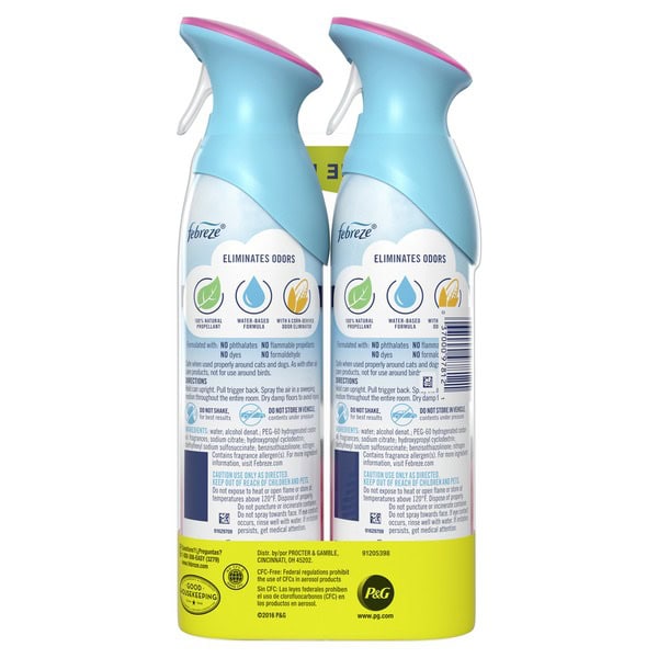 Odors. They’re everywhere… lingering in the air or arising at the most awkward times. Forget masking them with some froo-froo spray; Febreze Air Effects actually eliminates air odors. This can of ahhh-some straight up removes stink with a neat little molecule called cyclodextrin (Bonus: It’s naturally made from corn). It’s a handy air freshener that’s easy to use: Simply spray in a sweeping motion and clean away those bad smells anywhere… the bathroom, the kitchen, that cabin you rented for the weekend, the shoe closet, your kid’s room… anytime you want an instant burst of fresh. With the fresh, just-out-of-the-dryer scent of Downy April Fresh, you can enjoy the delightful aroma without doing a single load of laundry. And because Febreze AIR uses 100% natural propellants, you can confidently freshen your home every day. Looking for even more ways to breathe happy with Febreze? Take the freshness on the road with CAR Vent Clips.