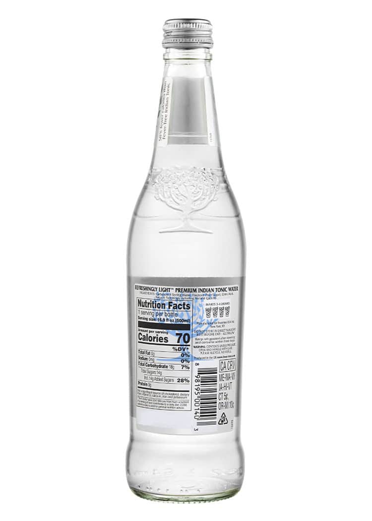 “Combines fruit sugars with citrus, aromatic botanicals and soft spring water to create a delicious, crisp taste balanced by the bitterness of natural quinine. With 45% fewer calories, this is the world’s first, all natural lower calorie tonic water.”
