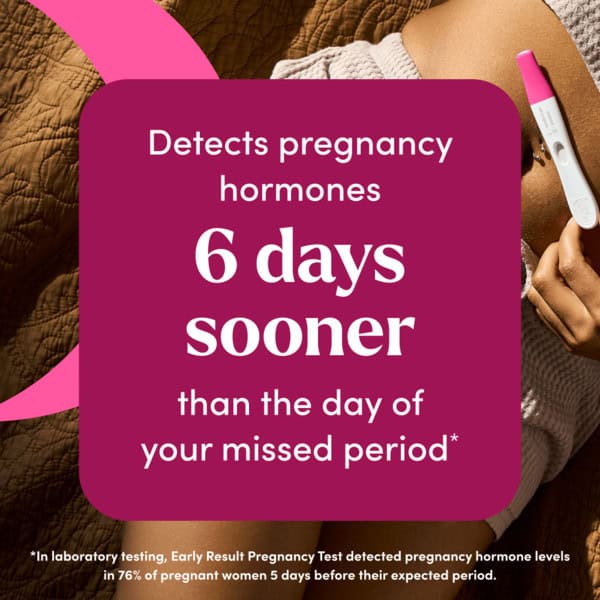 When asking yourself, Am I Pregnant?”, the earlier you know, the better. Featuring First to Detect technology, the First Response Early Result Pregnancy Test, 2 Count is sensitive enough to capture small amounts of pregnancy hormones to give you results 6 days sooner than your missed period. [1] Over 99% accurate at detecting typical pregnancy hormone levels. Note that pregnancy hormone levels may vary. [1] Than your missed period. In laboratory testing, First Response Early Result Pregnancy test detected pregnancy hormone levels in 76% of pregnant women 5 days before their expected period. See package for details about testing early.