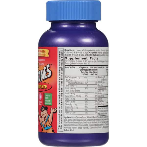 Helps support bone health with calcium, vitamin K and vitamin D. Free of: high fructose corn syrup, sugar, artificial flavor. Pediatrician’s no. 1 choice children’s chewable vitamin brand. Colors from natural sources.