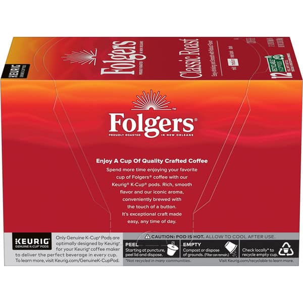 No matter what morning brings, you know you can count on quick and convenient Folgers K-Cup pods for The Best Part of Wakin’ Up. Folgers Classic Roast coffee delivers rich, smooth flavor and a famously fresh aroma for a distinct experience every time. It’s the quintessential Folgers medium roast coffee – an essential and delicious highlight in even the most hectic mornings. Packaged in genuine K-Cup pods, these simple single servings are optimally designed for Keurig coffee makers and brew in just a few minutes. Stock up now for an easy way to help make every day a little better.