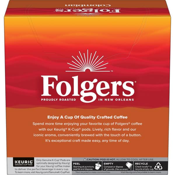Wake up your taste buds with a sip of something special, all the way from South America. Colombian coffee doesn’t even require a trip—with Folgers Colombian Coffee K-Cup pods, you only have to go as far as your kitchen. This delicious medium roast coffee was carefully crafted by our experienced roast masters for a consistent blend of rich and lively flavors in every single cup. And because each serving is conveniently packaged in genuine Keurig K-Cup coffee pods, you can quickly brew yourself the Best Part of Wakin’ Up using virtually any Keurig coffee maker. Order today!