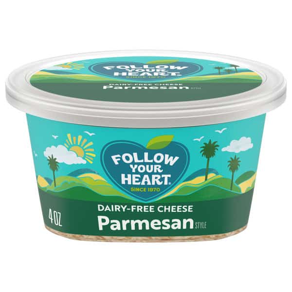 • SHREDDED CHEESE ALTERNATIVE: One 4 oz tub of Follow Your Heart Shredded Parmesan Style Soy Free, Gluten Free and Dairy Free Cheese – delicious in recipes for breakfast, appetizers and dinner
