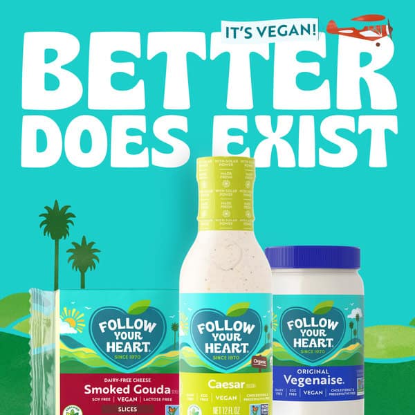 Satisfy your taste buds and feed your soul with new and improved Follow Your Heart Smoked Gouda Style Dairy Free Cheese Slices. Follow Your Heart is now better than ever! You can make your classic favorites without compromising on taste with cheesy Smoked Gouda tastiness. A plant based cheese made for cheese fans, Follow Your Heart Smoked Gouda cheese is an amazingly smooth and delicious vegan cheese with a rich, creamy texture. Every serving of this lactose free cheese alternative is free from dairy, soy, lactose, gluten and artificial flavors. These dairy free cheese slices are also Non GMO Project Verified and certified kosher. These vegan cheese slices melt beautifully with dishes like grilled cheese sandwiches, quesadillas and veggie burgers. Follow Your Heart non dairy cheese tastes great melted or cold and can be added to salads and lactose free nachos, or lay some love on your favorite sandwiches with this amazingly smooth Smoked Gouda cheese substitute. Finally, a yummy gluten free, lactose free cheese that melts to perfection! Enjoy every bite of Smoked Gouda cheese cheer with Follow Your Heart Vegan Cheese.