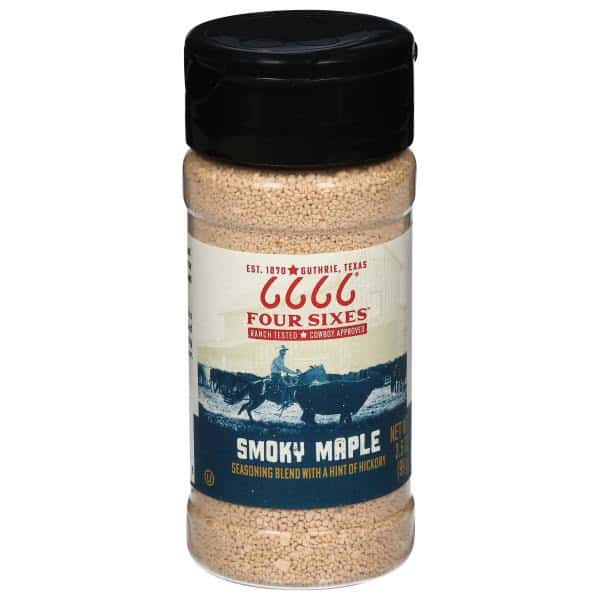 • One 3.5 oz bottle of Four Sixes Smoky Maple Seasoning Blend with a Hint of Hickory
