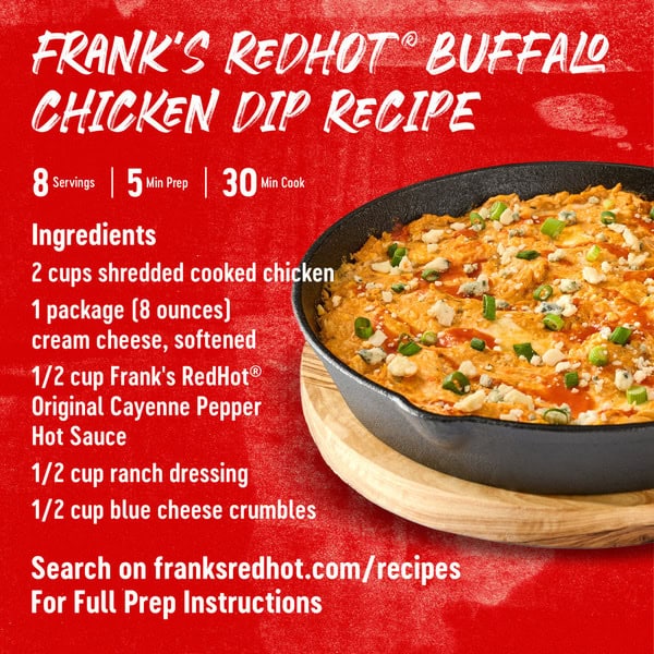 Frank’s RedHot® Original Cayenne Pepper Hot Sauce is made with a premium blend of aged cayenne peppers to add a kick of heat and whole lot of flavor to your favorite foods. Bring the heat to buffalo wings, chicken sandwiches, buffalo chicken dip, eggs — put that $#!t on everything!