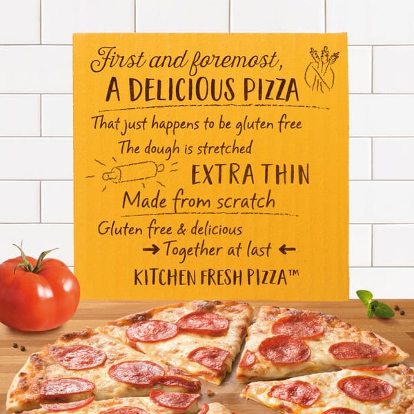 FRESCHETTA Gluten Free Pepperoni Pizza. The team at FRESCHETTA Pizza takes making premium pizza seriously. We are undeniable foodies who pour our souls into crafting the best tasting, highest quality frozen pizza. We use premium ingredients to create our made from scratch, extra thin, delicious gluten free crust. FRESCHETTA Gluten Free Pepperoni frozen pizza is covered with flavorful tomato sauce topped with 100% real mozzarella and premium pepperoni. Passionately uncompromising. FRESCHETTA Gluten Free Pepperoni frozen pizza is premium pizza perfection. Bake our frozen pizza in the oven at 450°F for 10-13 minutes and let the enticing aromas fill your home. Our thoughtfully crafted frozen pizza is artfully created so that you can serve wine night snacks or game-day party food that meet the standards of even the most discerning pizza experts. For over 20 years, we have been passionately dedicated to creating unparalleled premium frozen pizza perfection, because great pizza deserves the best ingredients and uncompromising dedication. Feed your passion and taste the difference yourself with FRESCHETTA frozen pizzas.
