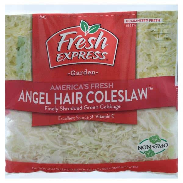 Garden. America’s Fresh. Thoroughly washed. Ready to eat. No preservatives. America’s Fresh Angel hair Coleslaw is a good source of Vitamin C contributes to normal collagen formation and the normal function of bones, teeth, cartilage, gums, skin and blood vessels. Low fat diets rich in fruits and vegetables (foods that are low in fat and contain vitamin A, vitamin C and dietary fiber) may reduce the risk of some types of cancer, a disease associated with many factors. Green cabbage is an excellent source of vitamin C. Why we’re so fresh: To guarantee Fresh Express Salads are consistently, deliciously fresh, we: Cool our salads within hours of harvest and keep them chilled from field to store. Thoroughly rinse and gently dry; then seal them in our Keep-Crisp bag to maintain freshness. Deliver fresh salad daily.
