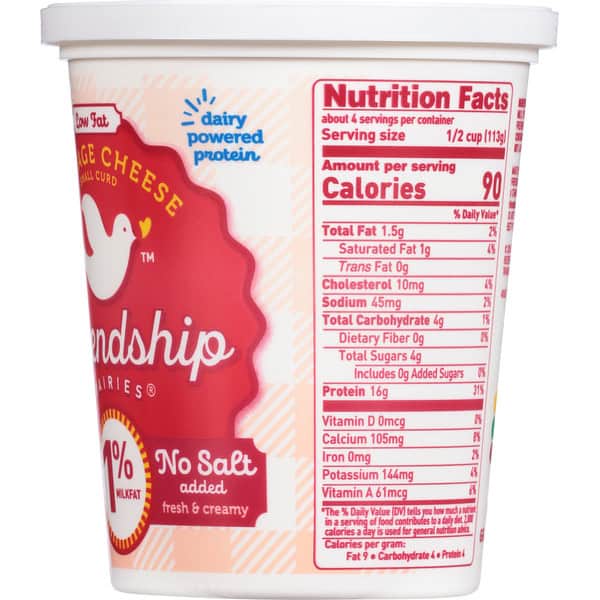 Friendship Dairiesâ„¢ 1% Milkfat Low Fat Cottage Cheese Small Curd.