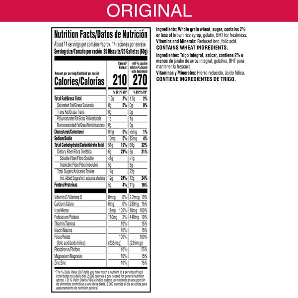 Whole Grain Wheat, Sugar, Contains 2% Or Less Of Brown Rice Syrup, Gelatin, Bht For Freshness, Vitamins And Minerals: Reduced Iron, Folic Acid