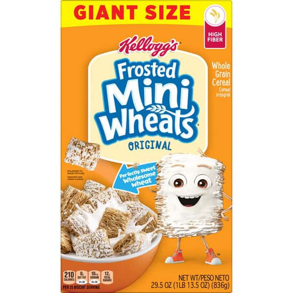 Greet the day with Kellogg’s Frosted Mini-Wheats Original cereal, a wholesome, low-fat breakfast cereal that’s built for big days. These bite-sized biscuits pack a hearty crunch with crispy layers of wheat made from 100% whole grain and frosted with irresistible sweetness in every bite. With 48g of whole grain per 60g serving, these tasty squares not only provide a delicious quick breakfast but are an excellent source of fiber; Each serving contains a good source of seven vitamins and minerals to help fuel you for what’s ahead. Enjoy wheat bites throughout the day, as a well-deserved snack at the office, an afternoon pick-me-up, or a late-night bowlful of sweet, crunchy cereal. Enjoy sweet cereal milk after a delicious bowl of Frosted Mini-Wheats cereal. This cereal is perfect to pack for lunchboxes, school snacks, sporting events, and busy, on-the-go moments. Frosted Mini-Wheats are a great start to your morning breakfast routine and for the adventures that follow.?