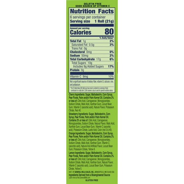 Cherry Ingredients: Sugar, Maltodextrin, Corn Syrup, Pear Puree Concentrate, Palm Oil. Contains 2% Or Less Of: Carrageenan, Citric Acid, Monoglycerides, Sodium Citrate, Acetylated Monoglycerides, Malic Acid, Xanthan Gum, Vitamin C (ascorbic Acid), Locust Bean Gum, Natural Flavor, Potassium Citrate, Red 40, Strawberry Ingredients: Sugar, Maltodextrin, Corn Syrup, Pear Puree Concentrate, Palm Oil. Contains 2% Or Less Of: Carrageenan, Citric Acid, Monoglycerides, Sodium Citrate, Natural Flavor, Acetylated Monoglycerides, Malic Acid, Xanthan Gum, Vitamin C (ascorbic Acid), Locust Bean Gum, Potassium Citrate, Lactic Acid, Color (red 3 & 40), Orange Ingredients: Sugar, Maltodextrin, Corn Syrup, Pear Puree Concentrate, Palm Oil. Contains 2% Or Less Of: Carrageenan, Citric Acid, Monoglycerides, Sodium Citrate, Acetylated Monoglycerides, Malic Acid, Xanthan Gum, Vitamin C (ascorbic Acid), Locust Bean Gum, Natural And Artificial Flavor, Potassium Citrate, Yellow 6, Lemon Ingredients: Sugar, Maltodextrin, Corn Syrup, Pear Puree Concentrate, Palm Oil. Contains 2% Or Less Of: Carrageenan, Citric Acid, Monoglycerides, Sodium Citrate, Acetylated Monoglycerides, Malic Acid, Xanthan Gum, Vitamin C (ascorbic Acid), Natural Flavor, Locust Bean Gum, Potassium Citrate, Yellow 5