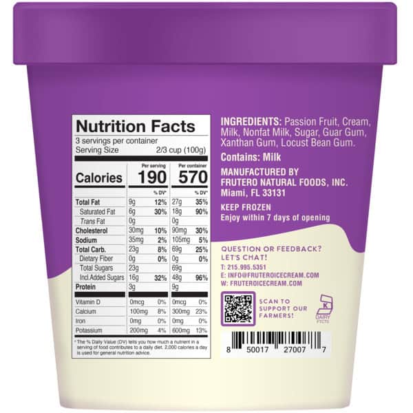 Passion Fruit, Cream, Milk, Nonfat Milk, Sugar, Guar Gum, Xanthan Gum, Locust Bean Gum.