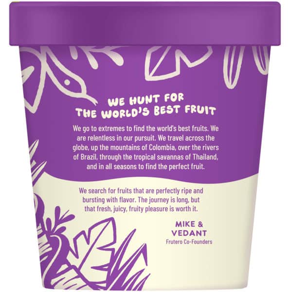 At Frutero, we’re on a mission to make the world’s best tropical fruit ice cream. We tasted dozens of passion fruit varieties from around the globe before selecting the most delicious passion fruits grown by farmers in Colombia. Each pint of our super-creamy, 100% real fruit ice cream is loaded with 4 fresh passion fruits inside. The delicious fruit flavor comes exclusively from ripe fruits, and we never use any artificial flavors, colors, or sweeteners. Unlike sorbets, Frutero is super creamy thanks to all-natural dairy. With so much fruit in each pint, Frutero is naturally lower in calories and fat. At Frutero, we celebrate fruits, the farmers who grow them, and the places where they are grown. Visit our website to learn more about how we are partnering with farmers in Colombia.
