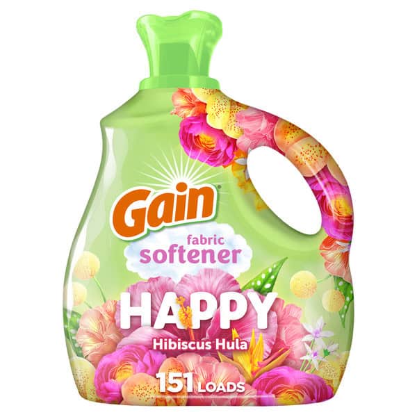 Sniff the good vibes with Gain Happy, a premium scent and softness experience that turns your laundry routine into a feeling of joy and happiness. Combining amazing softness with one of Gain’s most irresistible scents, Gain Happy Fabric Softener is packed with 40% more softening ingredients* to give you a laundry experience that feels as good as it smells. Send your nose to a tropical paradise as notes of hibiscus do the hula around your senses. You can use a little or a lot, depending on how far you want to go down the scent and softness rabbit hole. Gain Fabric Softener is safe in all machines and water conditions-even cold water. Try Gain Relax today to discover where it will take you.*Softness ingredients vs. Gain Original Fabric Softener.