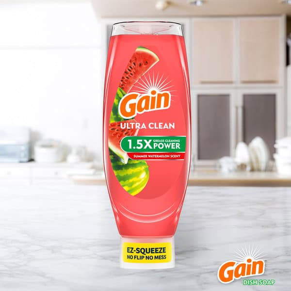 With Gain EZ-Squeeze, there’s no flip and no mess. The EZ-Squeeze bottle makes dishwashing fast and easy. Plus, Gain’s powerful formula makes for the Easiest, Squeeziest, Tackle your greasiest clean. From the first squeeze to the last, you’ll never worry about wasting a drop with Gain’s EZ-Squeeze bottle. For a fantastic clean with a great scent experience, try Gain Ultra dishwashing liquid dish soap.