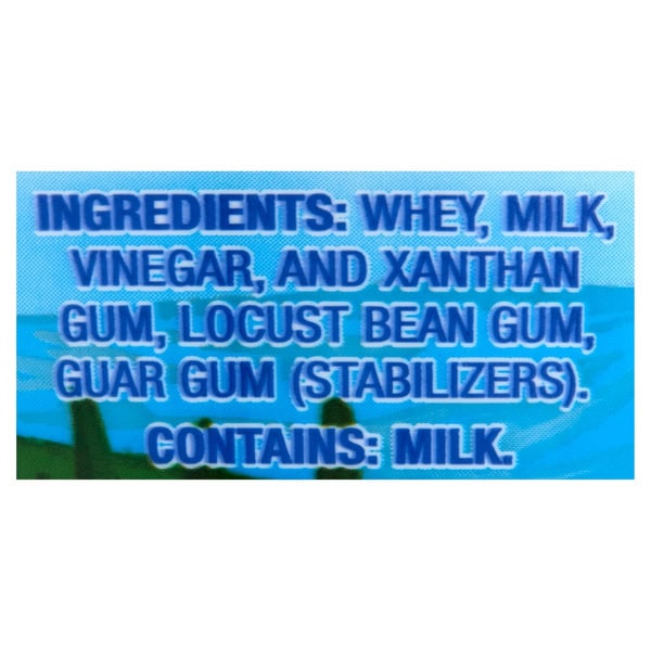 Whey, Milk, Vinegar, And Xanthan Gum, Locust Bean Gum, Guar Gum, (stabilizers).