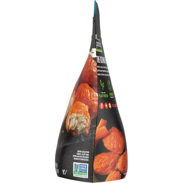 • Enjoy these non-GMO, vegan chick’n wings that contain no dairy ingredients and have 17 g protein per serving