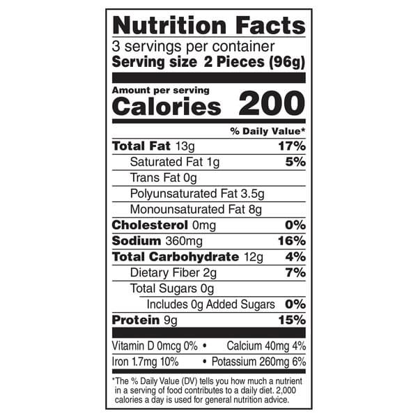 Water, Canola Oil, Textured Vegetable Protein Product (soy Protein Concentrate, Titanium Dioxide [color]), Enriched Wheat Flour (wheat Flour, Niacin, Reduced Iron, Thiamine Mononitrate, Riboflavin, Folic Acid), 2% Or Less Of: Potato Starch, Tapioca Starch, Methylcellulose, Salt, Yeast Extract, Degerminated Yellow Corn Flour, Natural Flavors, Onion Powder, Garlic Powder, Leavening (sodium Acid Pyrophosphate, Sodium Bicarbonate, Monocalcium Phosphate), Sunflower Oil, Wheat Gluten, Paprika, Dha Algal Oil, Autolyzed Yeast Extract, Spice, Soy Flour, Xanthan Gum, Sugar, Citric Acid, Soybean Oil, Turmeric.
