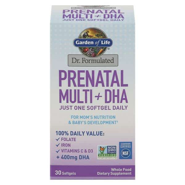 Just one softgel daily. For mom’s nutrition & baby’s development. Dr. Formulated Prenatal Multi + DHA is independently tested and verified through the Gold-standard NSF Contents & Label Certification program. Freshness. Purity. Potency. Dr. Formulated Prenatal Multi + DHA delivers whole food vitamins and minerals, plus essential Omega-3 DHA, in just one convenient softgel to support mom and baby’s health through pre-conception, pregnancy and nursing. Eye, heart & neural tube development. Immune system support. Easy to swallow, no burps. Package size is determined by labeling information, not the number of servings in this container. The serving size and contents are clearly marked. MSC: Certified sustainable seafood. msc.org. Carbon Nuetral: Certified Carbonfund.org. A Carbon Neytral product. 1% Ocean: Donating for ocean clean-up. Traceable & sustainably sourced. MSC-C-57924. From an MSC Certified sustainable fishery. www.msc.org.