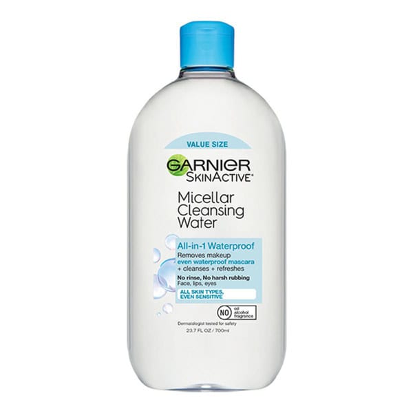 • This all-in-1 micellar cleansing water is a facial cleanser and waterproof makeup remover that is surprisingly powerful, yet gentle on skin. This micellar water for all skin types effectively cleanses, removes waterproof and long-wear makeup and refreshes skin. Like a magnet, micelles capture and lift away dirt, oil and makeup without harsh rubbing. This facial cleanser and waterproof makeup remover cleanses to remove stubborn makeup, leaving skin clean without a greasy residue. This Garnier micellar water is gentle on skin and can be used to remove face makeup and waterproof eye makeup. This gentle cleanser is paraben-free, fragrance-free, sulfate-free and silicone-free.