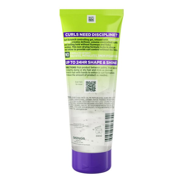 • Curls need discipline? Curl Scrunch Controlling Gel, infused with coconut water, creates defined, volume-controlled curls and lasting hold without flyaways and flaky residue. Get up to 24 hour shape & shine. This non-drying formula locks in shape and shine to provide curl control without the frizz. Formulated without sulfates, pthalates, or DMDM Hydantoin. All Garnier products, globally, are officially approved by Cruelty Free International under the Leaping Bunny Program.