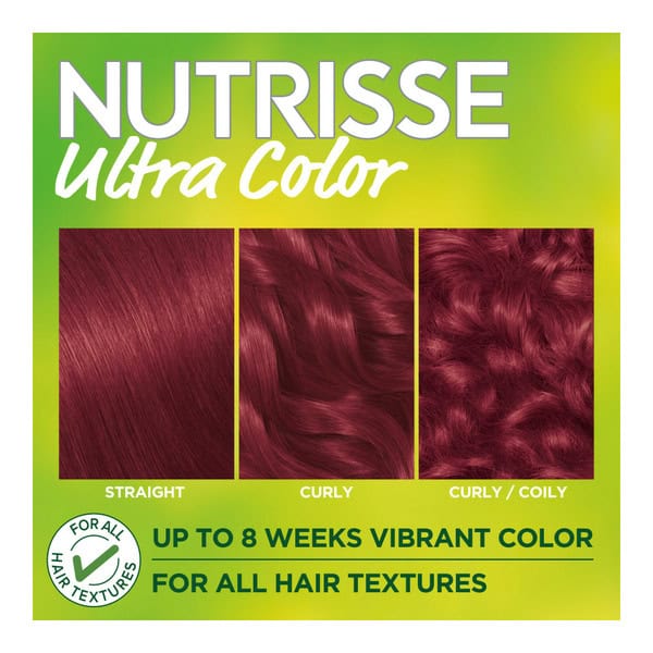 • Garnier Nutrisse Ultra Color delivers up to 8 weeks of bold vibrant color for all hair textures and even dark bases