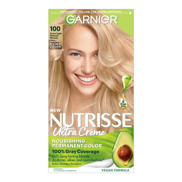 • Garnier Nutrisse Ultra Crème Nourishing Permanent Hair Color nourishes as it colors with five sustainably sourced oils- avocado, olive, coconut, argan and shea