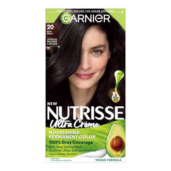 • Garnier Nutrisse Ultra Crème Nourishing Permanent Hair Color nourishes as it colors with five sustainably sourced oils- avocado, olive, coconut, argan and shea