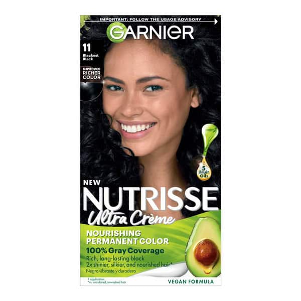 • Garnier Nutrisse Ultra Crème Nourishing Permanent Hair Color nourishes as it colors with five sustainably sourced oils- avocado, olive, coconut, argan and shea