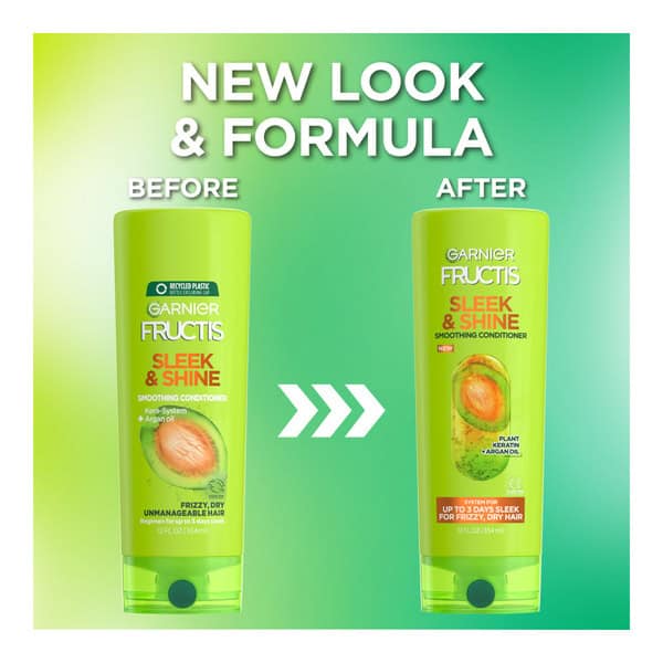 • Frizzy, dry hair? Get up to 72HR frizz control with our Sleek & Shine system that smooths hair instantly for visibly sleeker, shinier hair. Provides long-lasting frizz control even in 97% humidity. Our technology is infused with argan oil + plant keratin plant-based amino acids similar to those found in hair, and formulated without parabens, pthalates, or DMDM Hydantoin. All Garnier products, globally, are officially approved by Cruelty Free International under the Leaping Bunny Program.