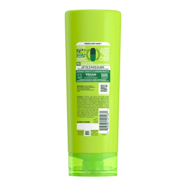 • Fructis Sleek and Shine system with sustainably sourced Argan Oil from Morocco plus Plant Keratin plant-based amino acids similar to those found in hair for up to 3 days sleek