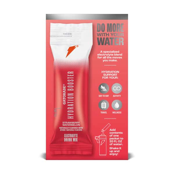• Includes 6 (0.35 oz) Gatorade Hydration Booster Electrolyte Drink Mix Sachets, Strawberry Watermelon flavor