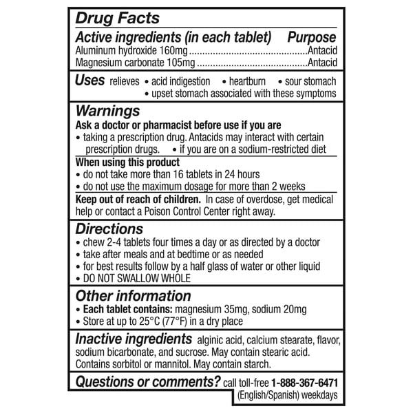 • Relieves heartburn, sour stomach, acid indigestion, and upset stomach associated with these symptoms